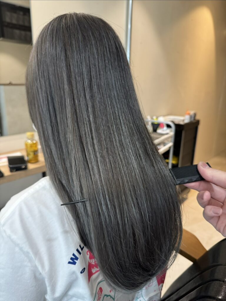 綺麗なハイトーンカラーは光に透けるツヤが美しく、肌のくすみも飛ばしてくれるカラーです!